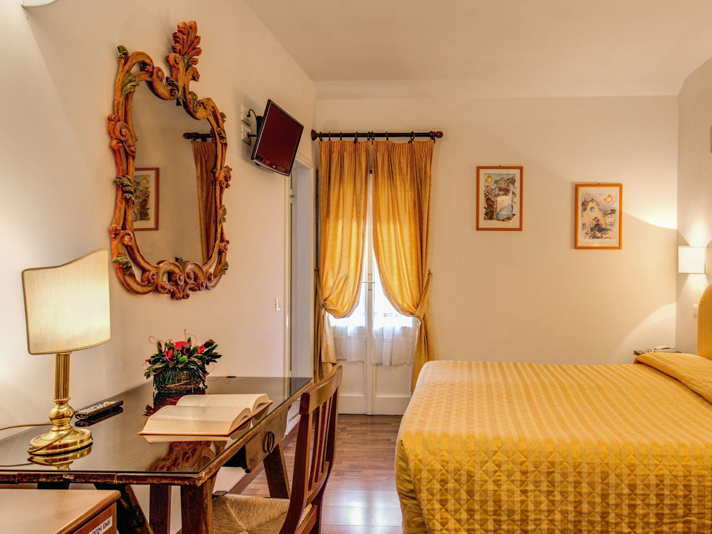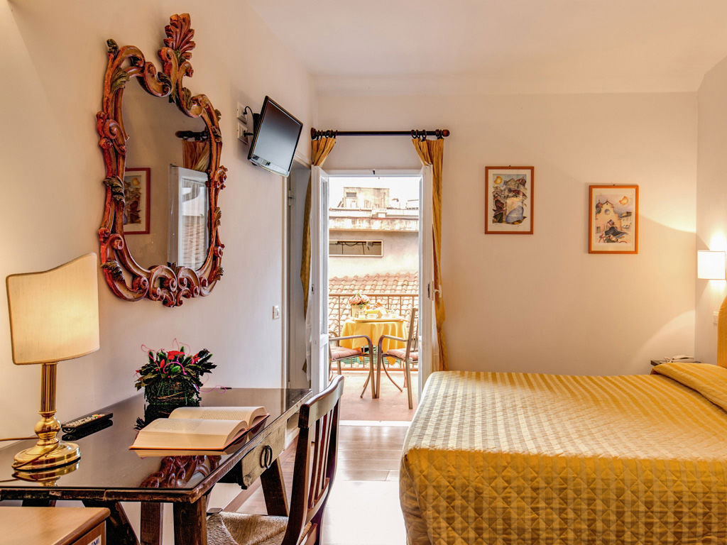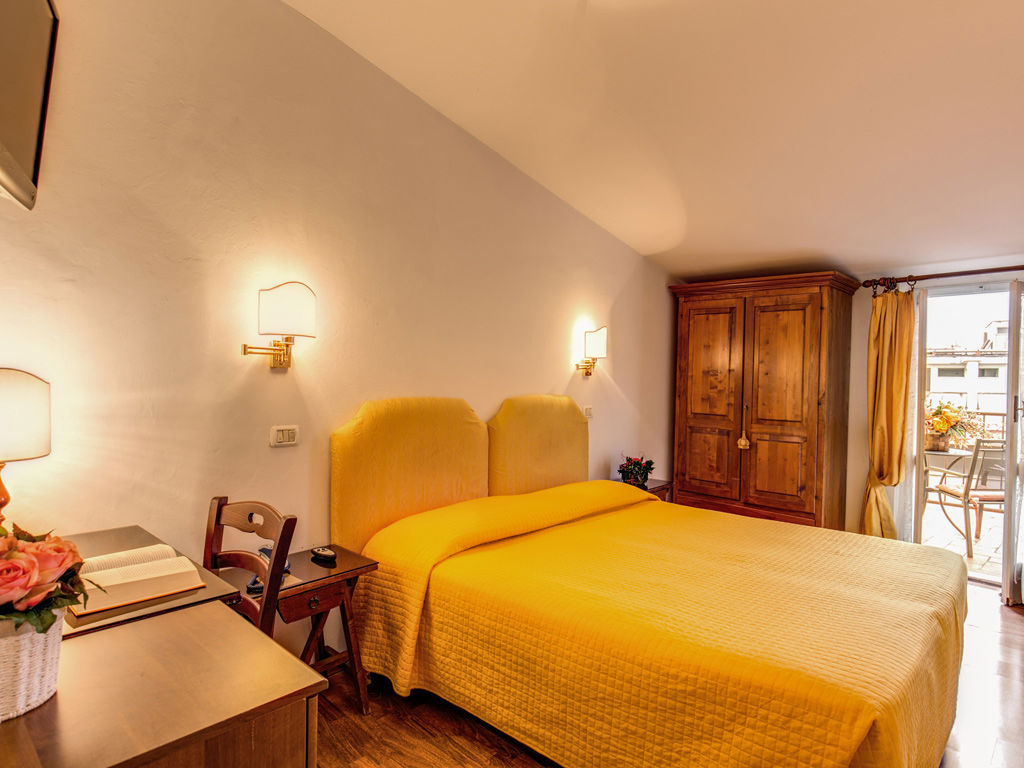 Chambre confortable avec lit double ou deux lits simples, spacieuse et dotée d'un balcon privé, idéale pour les couples et les voyageurs en quête de détente et de confort avec une vue imprenable. Elle est équipée d'une télévision par satellite à écran plat, d'une connexion Wi-Fi, d'un minibar et d'un coffre-fort sur demande, de la climatisation réversible réglable depuis la chambre et d'un téléphone direct.